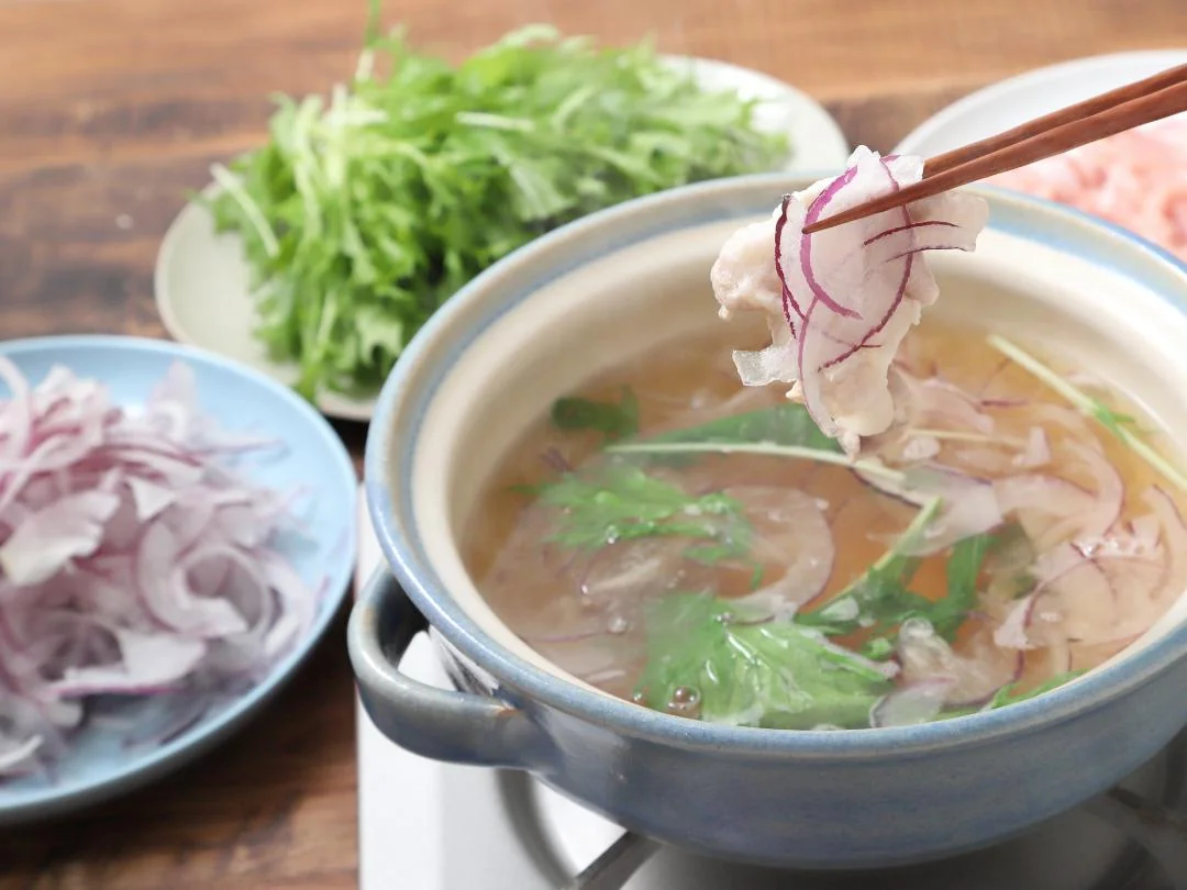 スープも味わう豚と紫たまねぎのしゃぶしゃぶ