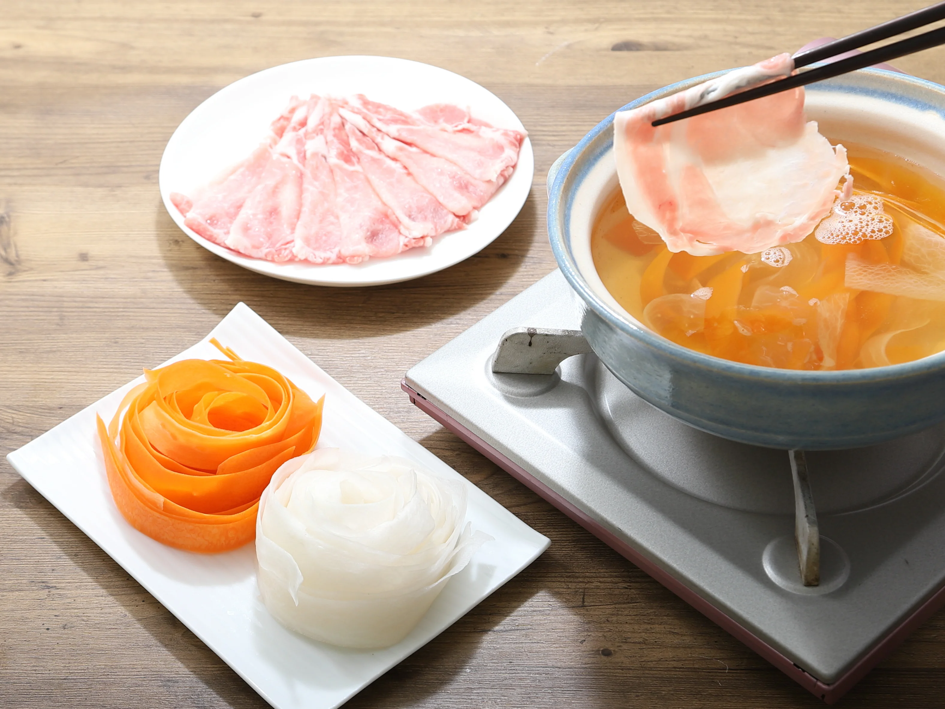 味のついたスープに具材をくぐらせ、スープと一緒に楽しむ新スタイルのしゃぶしゃぶです。