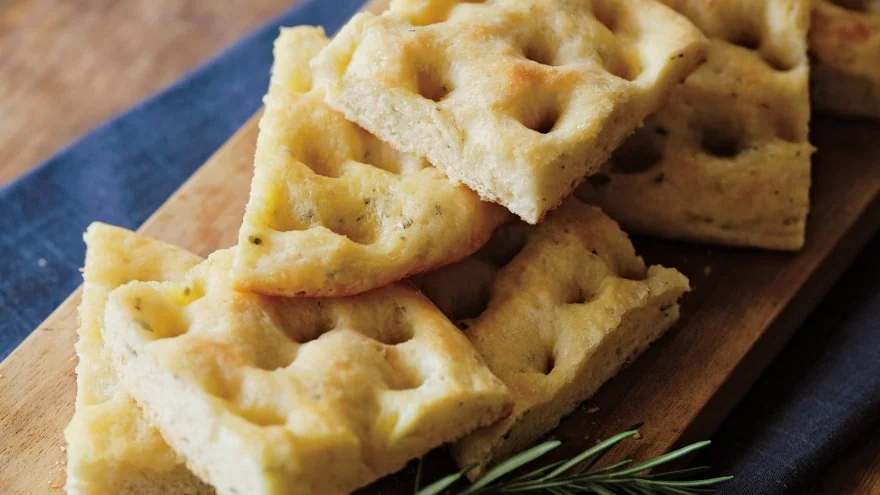 ピザ生地をそのまま焼けば、シンプルパンがつくれます。オリーブ油をかけて焼くと、生地に油がしみ込み、風味がよくなります。